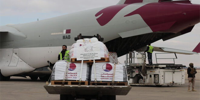 وصلت طائرة مساعدات قطرية إلى مطار دمشق الدولي اليوم، تحمل على متنها مساعدات إنسانية مقدمة من صندوق قطر للتنمية وقطر الخيرية لمساعدة الشعب السوري.