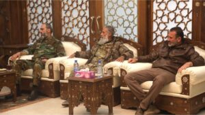 2025-01-10دمشق-ساناتستمر وزارة الدفاع السورية بعقد الجلسات التنظيمية مع القيادات العسكرية ضمن عملية انخراط الفصائل في الوزارة. الفصائل وزارة الدفاع السورية 2025-01-10Rwan
