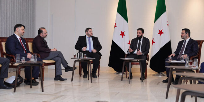 2025-01-10دمشق-ساناالتقى قائد الإدارة السورية الجديدة أحمد الشرع ووزير الخارجية أسعد الشيباني وفداً من الجالية السورية في أمريكا. القائد الشرع 2025-01-10Hassan Nasr