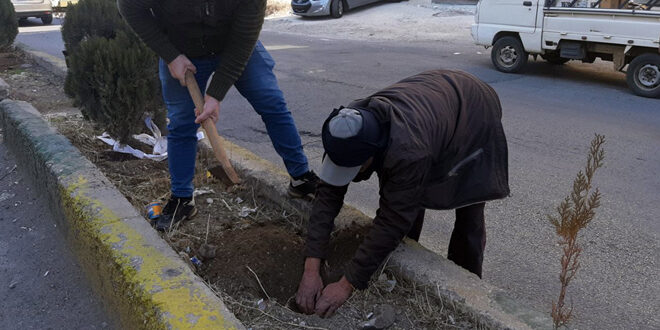 نظم متطوعون من جمعية حبر للتعليم والتمكين والتنمية اليوم، بالتعاون مع مجلس مدينة السويداء مبادرة للتشجير، وذلك احتفالاً بالنصر والتخلص من النظام البائد.