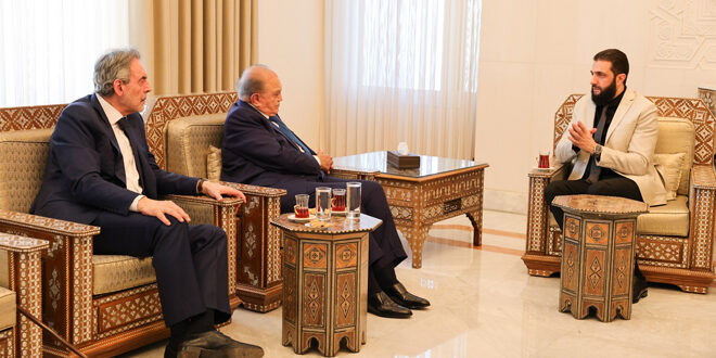 2025-01-14دمشق-ساناالتقى قائد الإدارة السورية الجديدة أحمد الشرع مع رجل الأعمال السوري وفيق رضا سعيد بقصر الشعب في دمشق. قائد الإدارة السورية الجديدة "أحمد الشرع" 2025-01-14malek