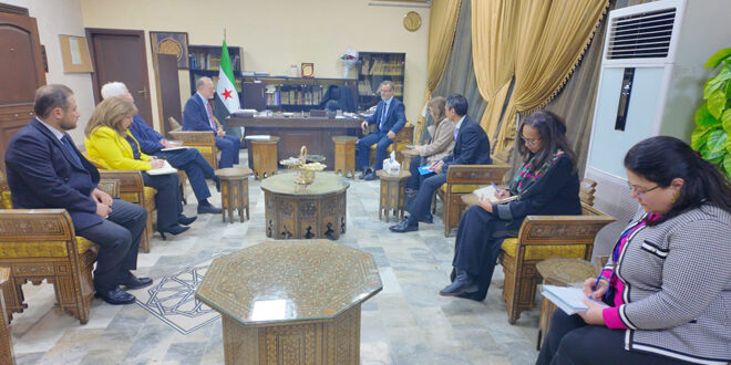 بحث وزير التربية والتعليم نذير القادري اليوم مع تيد شيبان نائب المدير التنفيذي لمنظمة الأمم المتحدة للطفولة (اليونيسيف) لشؤون العمل الإنساني وعمليات الإمداد والوفد المرافق، واقع التعليم في سوريا بعد التحرير.
