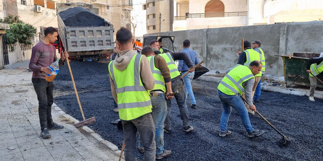 جهود كبيرة يبذلها عمال مجلس مدينة اللاذقية لإصلاح وإعادة تأهيل عدد من الطرقات داخل المدينة