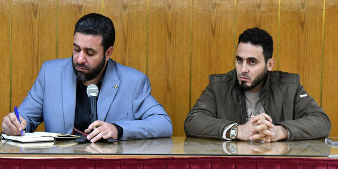التقى وزير التجارة الداخلية وحماية المستهلك المهندس ماهر خليل الحسن اليوم مع العاملين الذين مُنِحوا إجازة مأجورة لمدة ثلاثة أشهر في الوزارة، وتم الرد على استفساراتهم حول الإعلان الداخلي للمسابقة المزمع إجراؤها وغيرها من القضايا الوظيفية.