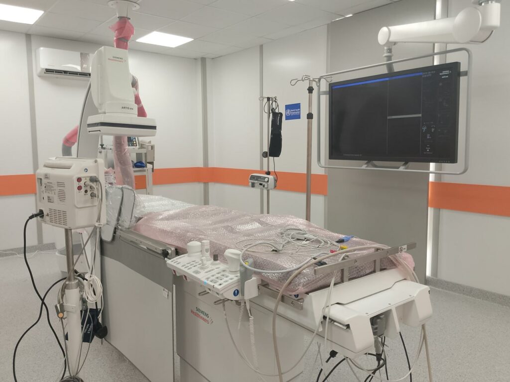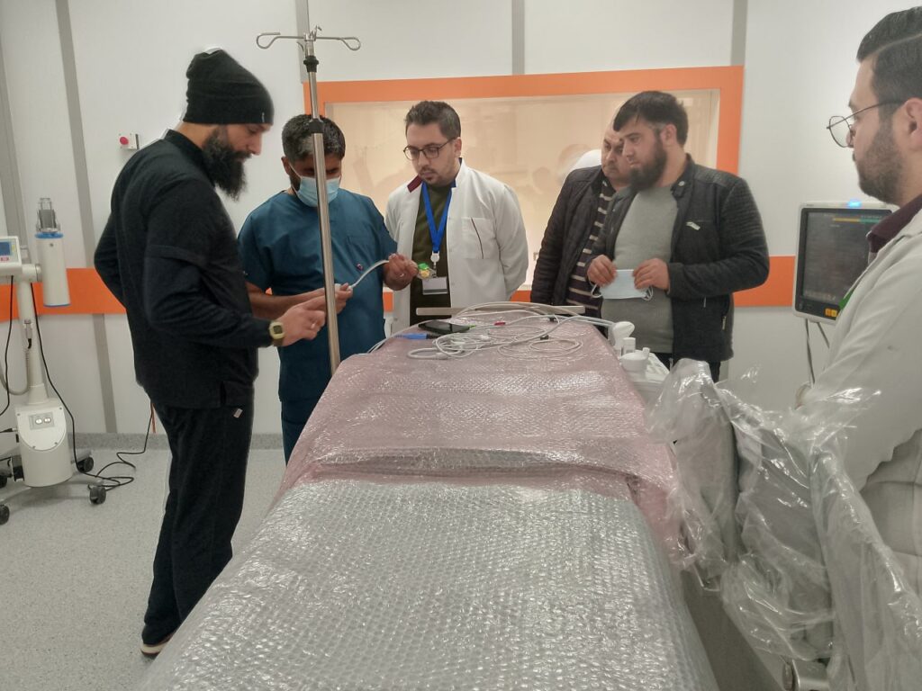 ولفت المحمد إلى أنه يجري التواصل مع عدد من المنظمات لتقديم الدعم اللازم من الشبكات والمواد اللازمة لإجراء القثطرة التشخيصية، مبيناً أنه تمت الاستعانة بكوادر طبية متخصصة من إدلب لتشغيل القسم ريثما يتم تدريب الكوادر الطبية والتمريضية الموجودة بالمشفى خلال الفترة القادمة علماً أنه يوجد حاليا 15 طبيباً مقيماً اختصاص قلبية في المشفى.