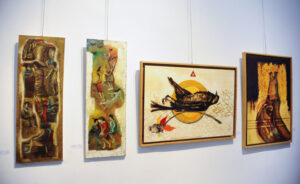 وضم المعرض الذي تستضيفه صالة زوايا 25 عملاً توزعت بين اللوحات والمنحوتات، بمواضيع تناولت الإنساني والمدن والتراث والأسطورة، حيث جاءت اللوحات بأحجام كبيرة وتقنيات متعددة، والمنحوتات بأحجام بين الكبير والمتوسط وبخامات متنوعة، لتعكس تلك الأعمال رؤى وأفكار وتجارب أصحابها.