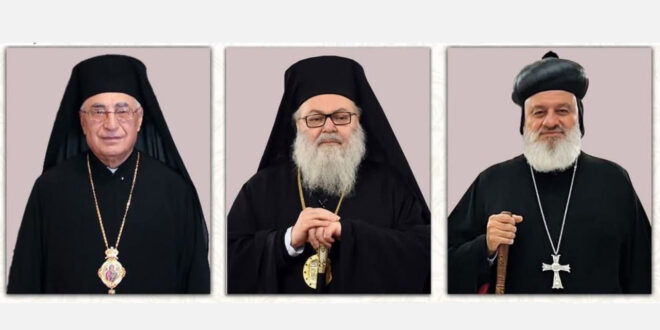 وجه البطاركة يوحنا العاشر بطريرك أنطاكية وسائر المشرق للروم الأرثوذكس، وإغناطيوس أفرام الثاني بطريرك أنطاكية وسائر المشرق للسريان الأرثوذكس، ويوسف العبسي بطريرك أنطاكية وسائر المشرق للروم الملكيين الكاثوليك، برقية تهنئة مشتركة إلى رئيس الجمهورية العربية السورية السيد أحمد الشرع، بمناسبة توليه رئاسة الجمهورية.
