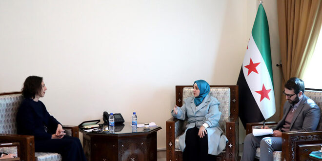 التقت رئيسة مكتب شؤون المرأة في سوريا عائشة الدبس، مع المبعوثة البريطانية الخاصة إلى سوريا، آن سنو، وشكرتها على وقوف المملكة المتحدة إلى جانب الشعب السوري، وكل ما قدمته من مساعدات ودعم إنساني وسياسي خلال سنوات الثورة السورية.