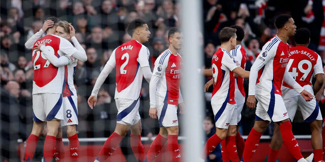 بخماسية مقابل هدف يتيم، حسم أرسنال قمة الدوري الإنكليزي لكرة القدم، أمام ضيفه مانشستر سيتي، في الجولة الـ 24 من البطولة.