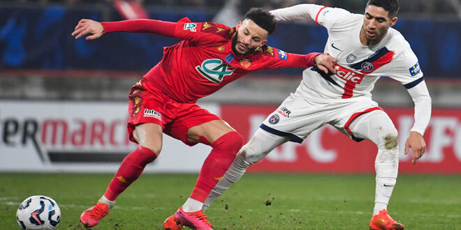 بلغ نادي باريس سان جيرمان الدور ربع النهائي لمسابقة كأس فرنسا لكرة القدم، بعد تخطيه مستضيفه لومان من الدرجة الثالثة بهدفين دون رد .