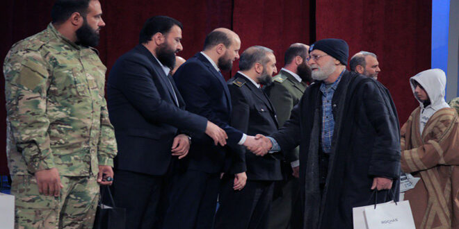 لقطات من حفل تكريم مصابي وأهالي شهداء معركة ردع العدوان الذي نظمته وزارة الدفاع في المركز الثقافي بمدينة إدلب