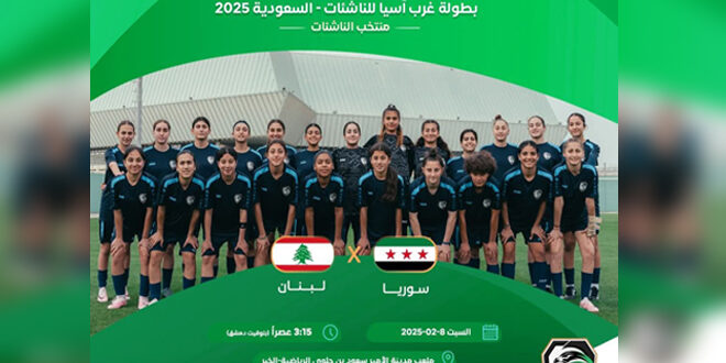 يلتقي منتخب سوريا لكرة القدم للناشئات مع نظيره اللبناني غداً، في أولى مبارياته ببطولة غرب آسيا، التي تستضيفها السعودية حتى السادس عشر من الشهر الجاري.