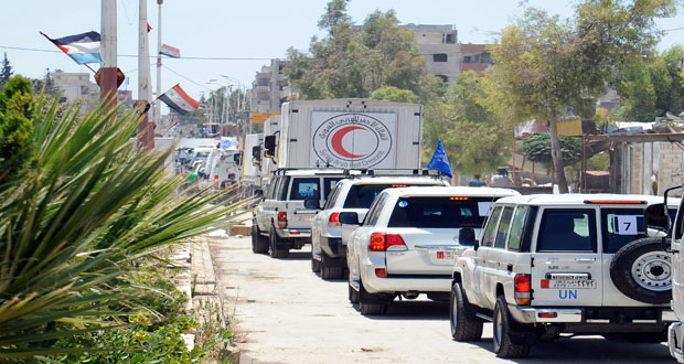 بالتعاون مع الحكومة السورية دخول دفعة من المساعدات إلى معضمية الشام