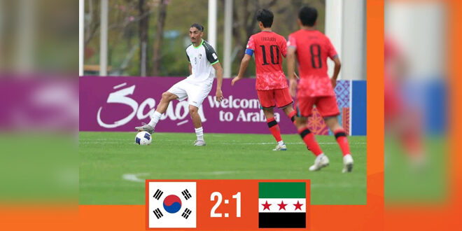 خسر منتخب سوريا بكرة القدم للشباب اليوم أمام منتخب كوريا الجنوبية، وذلك بهدف مقابل هدفين.