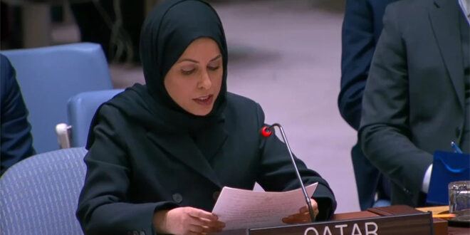 وأضافت المندوبة الدائمة: “إن موقف قطر الثابت تجسد في عودة العلاقات الأخوية مع الجمهورية العربية السورية الشقيقة، وتجلى خلال الزيارة الرسمية لحضرة صاحب السمو الشيخ تميم بن حمد آل ثاني إلى العاصمة السورية، كأول رئيس دولة يزورها بعد هذا التحول التاريخي، حيث جدد دعم وحدة سوريا وسيادتها واستقلالها”.