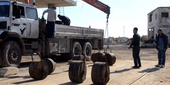 شعبة المكاييل في مديرية التموين بإدلب تقوم بمعايرة القبانات الأرضية بمناطق معرة النعمان وخان السبل