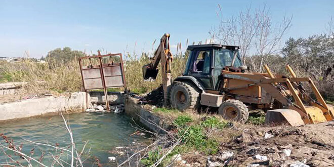 نفذت مديرية الموارد المائية في اللاذقية اليوم حملات تنظيف وتعزيل شاملة للقنوات والمجاري المائية في مدينة جبلة، لمنع انسدادها وللحفاظ على تدفق المياه بشكل منتظم وفعّال، ما يقلل من الهدر المائي.
