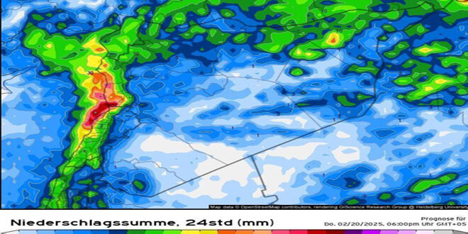 تتأثر سوريا بنزول كتلة قطبية المنشأ شديدة البرودة بدءاً من يوم الجمعة القادم، وتستمر تأثيراتها حتى نهاية شهر شباط، بحيث تكون درجات الحرارة أدنى من معدلاتها السنوية بنحو 10 إلى 13 درجة مئوية.