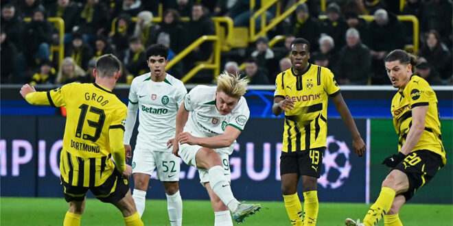 تأهل نادي بروسيا دورتموند الألماني إلى الدور الـ16 في بطولة دوري أبطال أوروبا لكرة القدم، بتعادله مع ضيفه سبورتنغ لشبونة البرتغالي بدون أهداف، في مباراة الإياب التي جمعت الفريقين اليوم على أرضية ملعب سيجنال إيدونا بارك.