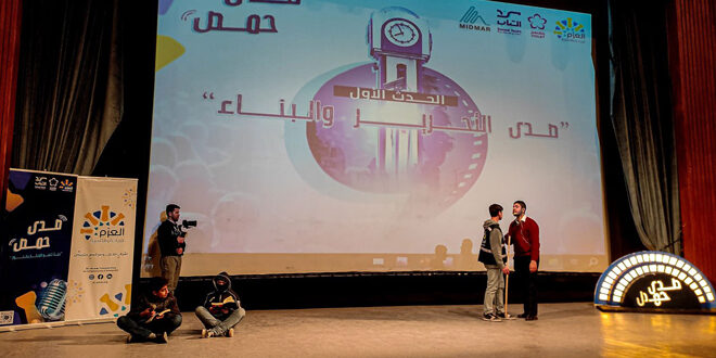 نظمت مؤسسة العزم للريادة والتنمية بالشراكة مع منظمة بنفسج ومؤسسة سند الشباب التنموية ومنظمة MIDMAR، فعالية ثقافية على مسرح دار الثقافة في حمص بعنوان “صدى حمص ــ الحدث الأول صدى التحرير والبناء”.