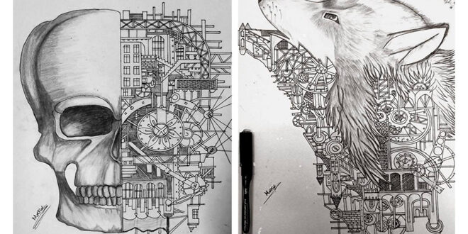 وبأدوات هندسية بسيطة وقلم رصاص وآخر حبر أسود تبدع الشابة ماريا في إنجاز لوحاتها، التي نشرتها على إحدى منصات التواصل الاجتماعي، وحظيت بإعجاب الكثيرين وتشجيعهم.