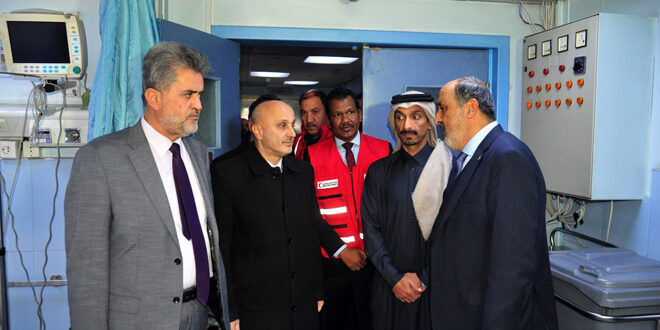 تفقد معاون القائم بأعمال وزارة الصحة مع القائم بأعمال السفارة القطرية في سوريا سير العمل والخدمات المقدمة في مشفيي جراحة القلب الجامعي ودمشق لأمراض وجراحة القلب بدمشق.