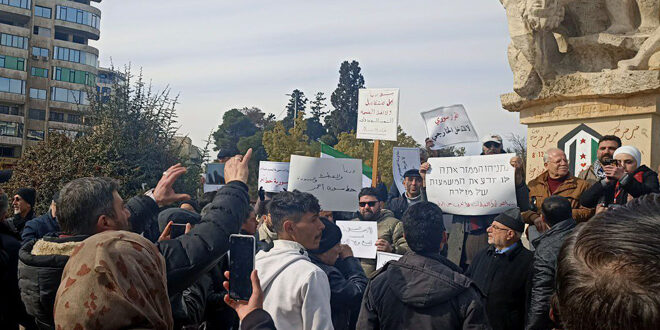 مظاهرة حاشدة في السويداء احتجاجاً وتنديداً بالتصريحات الإسرائيلية الأخيرة
