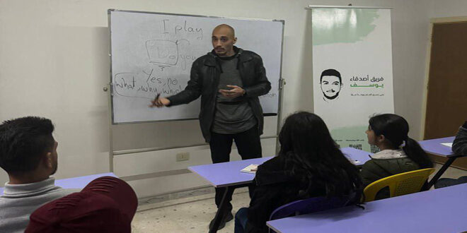 عبّر أكثر من عشرين شاباً وشابة عن وفائهم لصديقهم يوسف الذي توفي منذ أكثر من عام بتأسيس فريق تطوعي باسم (أصدقاء يوسف)، ويهدف إلى مساعدة الطلاب بإتمام تحصيلهم الدراسي عبر دورات تقوية مجانية، أو بدخول سوق العمل بدورات تدريبية وتأهيلية.