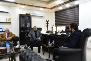 بحث وزير التجارة الداخلية وحماية المستهلك المهندس ماهر خليل الحسن مع رئيس غرفة تجارة العقبة في الأردن نائل كباريتي والوفد المرافق له سبل التعاون وتعزيز الشراكة التجارية والاقتصادية بين سوريا والأردن.