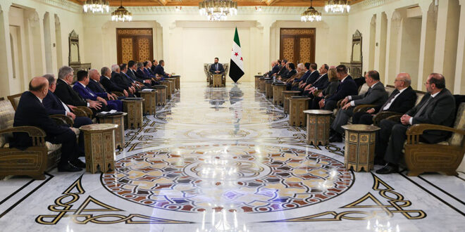 2025-02-27دمشق-ساناالتقى رئيس الجمهورية العربية السورية السيد أحمد الشرع في قصر الشعب وفد المنتدى السوري للتنمية. الرئيس الشرع 2025-02-27Hassan Nasr