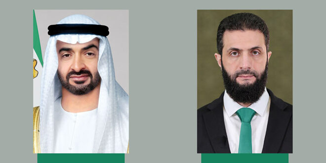 تلقى السيد الرئيس أحمد الشرع برقية تهنئة من الشيخ محمد بن زايد آل نهيان رئيس دولة الإمارات العربية المتحدة بمناسبة حلول شهر رمضان المبارك.
