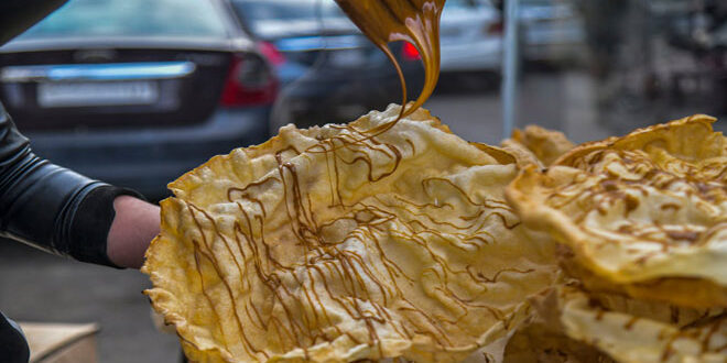 على قطعة دائرية مصنوعة من الطحين والماء ترتسم خيوط من الدبس فوقها، مكونة لوحة تزين موائد السوريين في الشهر الكريم بطعم حلو محبب للكبار والصغار، هي الجرادق “الناعم” التي حافظت على مكانتها في طعام الإفطار وتنافس أشهى الحلويات، وتؤكد تمسك السوريين بطقوس رمضانية تميز بلدهم.