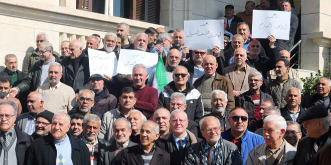 وقفة أمام نقابة المهندسين في حلب تأكيداً على ضرورة ملاحقة فلول النظام البائد ومحاسبة كل من يزعزع أمن واستقرار البلاد