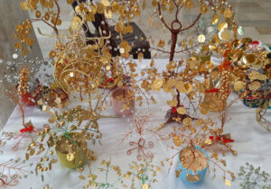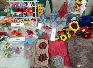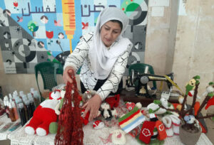 فيما بينت عليا بريك التي تحدت مرض السرطان أنها شاركت بأعمال الشالات المصنعة على النول والصنارة بغية تقديم منتجات ترضي أذواق زوار المعرض، مع إجراء تخفيض على أسعارها.