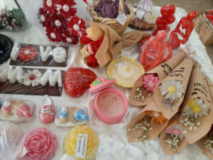 فيما جمعت صفاء حمزة بين منتجات غذائية من دبس وخبز عربي ومجففات، إضافة إلى الإكسسوارات، في محاولة منها للتعريف بمشروعها الصغير بشكل أكبر، بينما أظهرت أمل الصالح منتجات تعكس مهاراتها بتصنيع الكريمات والصابون والمعطرات ضمن مشروعها الذي تعمل عليه منذ سنوات.