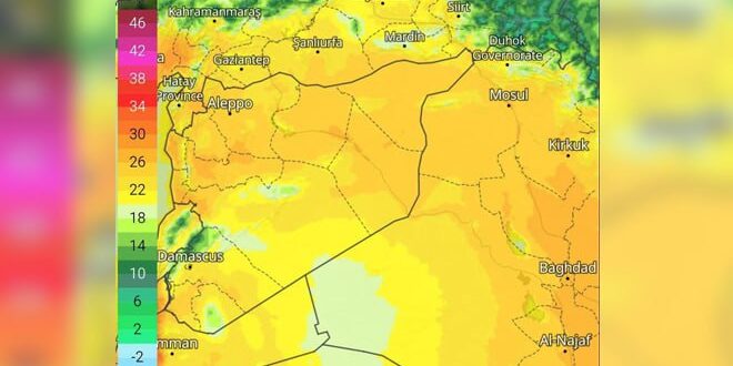 تشهد درجات الحرارة خلال الأيام المقبلة ارتفاعا يصل إلى ٣٠ درجة، نتيجة تأثر البلاد بمرتفع جوي يبدأ اعتبارا من السبت المقبل، ويمتد على أجزاء واسعة من شمال ووسط سوريا.