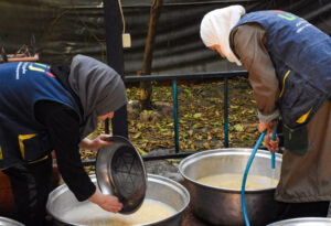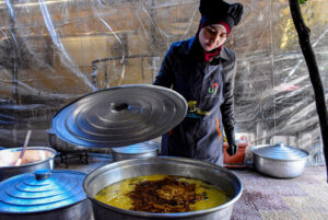 الشيف نور المسؤولة عن الطبخ في المشروع منذ نحو 9 سنوات، بينت أن أصناف الطعام التي تقدم بالوجبات متنوعة، لافتة إلى أن المشروع انطلق لتخفيف العبء عن الأهالي، بينما أشارت ميادة العمر المتطوعة بالمشروع منذ 3 سنوات إلى العمل بروح الفريق لدعم الأسر المحتاجة.