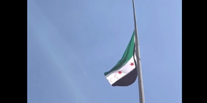 العلم السوري يرفرف عالياً في سماء ساحة السبع بحرات بإدلب إحياء لذكرى الثورة السورية