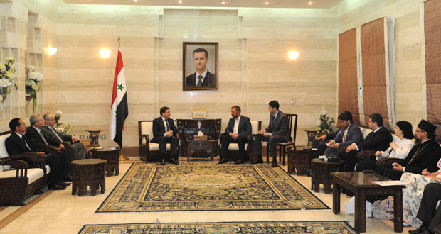 من جهتهم عبر أعضاء الوفد عن تقديرهم لصمود الشعب السوري في وجه الحرب الكونية التي تستهدفه والتضحيات التي يقدمها من أجل المحافظة على وحدة بلاده أرضاً وشعباً مؤكدين وقوفهم إلى جانب الشعب السوري .