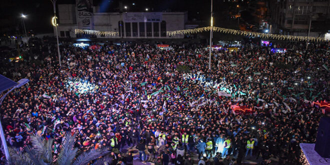 احتفاءً بالذكرى الرابعة عشرة لانطلاق الثورة السورية المباركة، احتشد الآلاف من المواطنين في ساحة العاصي بمدينة حماة، مساء اليوم، في فعالية احتفالية تحت شعار: “سلام يعم وأمل يتجدد”.