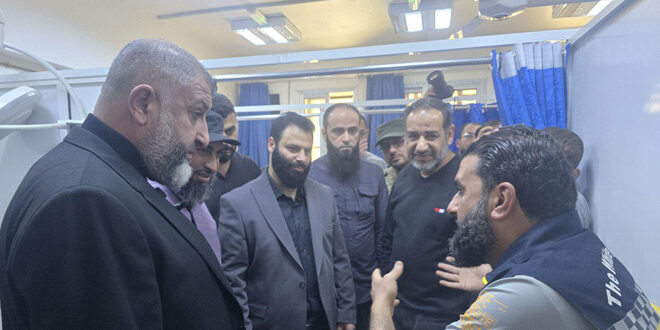 شخصيات حكومية برئاسة محافظ درعا يتفقدون جرحى الغارات الإسرائيلية التي استهدفت محيط المدينة