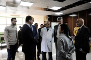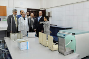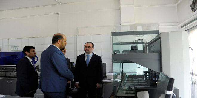 واطلع الدكتور الشرع خلال الجولة على عمل أقسام التبرع والمخابر والمخازن والحجر ومخابر “الهيماتوكربت” المتخصصة بفحوص تقييم نسبة خلايا الدم الحمراء في الدم، كما اطلع على مخبر المناعات الدموية ومخبر الفحوص المصلية والفصل.