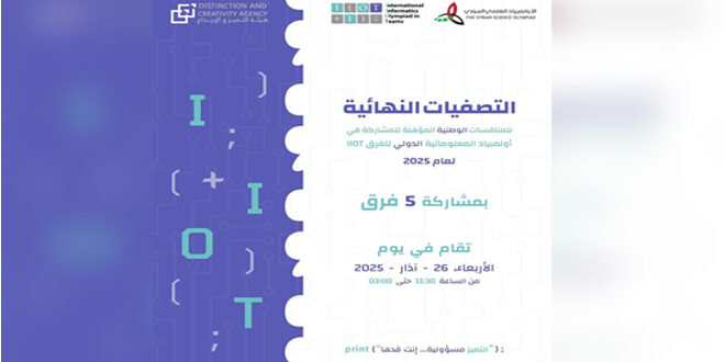 حددت هيئة التميز والإبداع موعد اختبارات التصفيات النهائية المحلّية لمسابقة الفرق الدولية للمعلوماتية IIOT يوم الأربعاء القادم، بمشاركة خمسة فرق مدرسية.