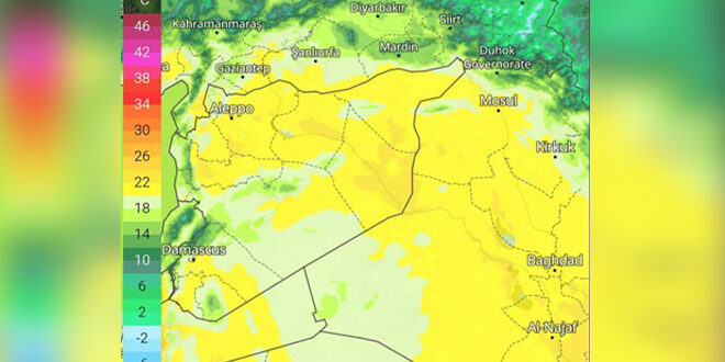 ووفق تحليل النماذج العددية الصادر عن مكتب الإنذار المبكر للعوامل الجوية في الدفاع المدني السوري، يكون طقس الليلة صحواً ومستقراً مع انتشار طفيف لبعض السحب المتفرقة على الساحل وشمال غربي البلاد، وتميل درجات الحرارة للارتفاع مع انحسار كامل للصقيع عن المناطق كافة.