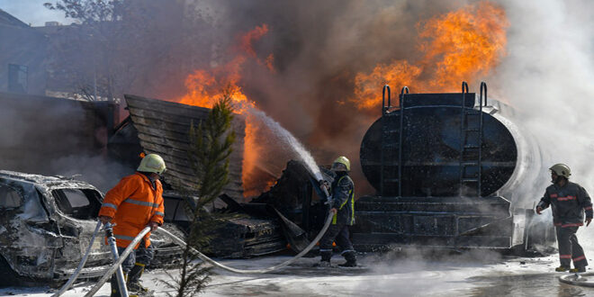 أخمدت فرق الإطفاء اليوم حريقاً اندلع في صهريج مازوت ببناء ملاصق للمنطقة الحرة، بالبرامكة في دمشق.
