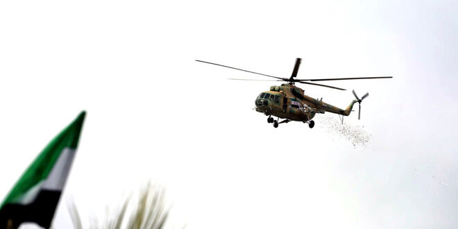 2025-03-28 سلاح الجو في الجيش العربي السوري يشارك باحتفالات الذكرى العاشرة لتحرير إدلب بإلقاء الورود على حشود الأهالي في حديقة التحرير 2025-03-28SAMER
