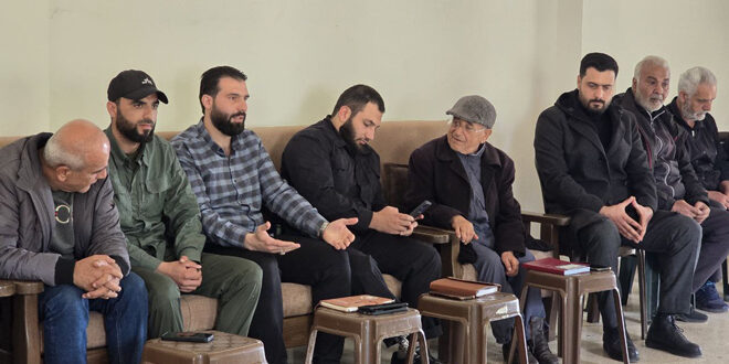 في إطار الزيارات الميدانية لمناطق ريف جبلة، اجتمع وفد من إدارة المنطقة، ومسؤول اللجنة الأمنية مع أعيان ووجهاء قرية بستان الباشا.