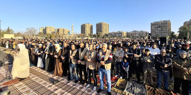 الآلاف يحتشدون في الجوامع والساحات العامة التي حددتها وزارة الأوقاف في مختلف المدن السورية لأداء صلاة عيد الفطر المبارك، وذلك في أول عيد بعد تحرير البلاد وإسقاط النظام البائد.