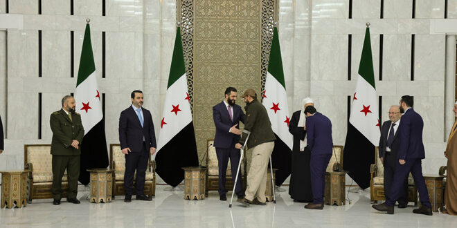 لقاء تهنئة عيد الفطر في قصر الشعب بدمشق جمع السيد الرئيس أحمد الشرع بعدد من الأهالي والمسؤولين