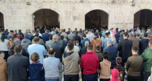 إقامة أول صلاة عيد الفطر في الجامع الكبير في مدينة معرة النعمان بعد تحرير سوريا